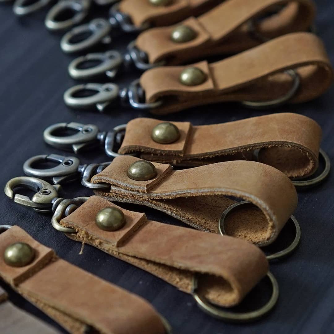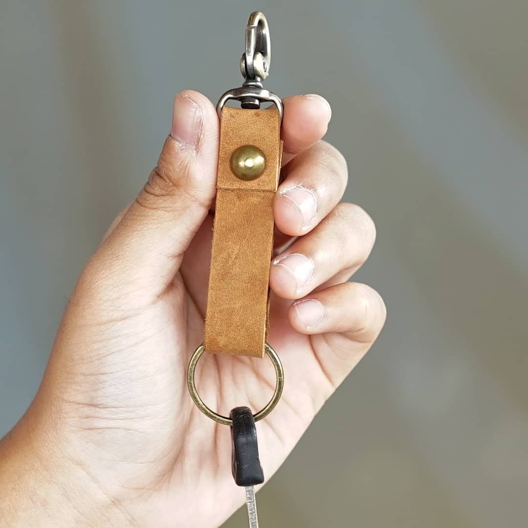 Gantungan kunci minimalis design simpel terbuat dari bahan kulit asli crazy horse dengan proses pembuatan handmade (jahitan tangan).